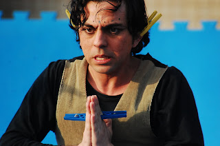 Marco: Tivemos um trabalho para fazer isso mesmo, gravar. Gravar a cena no corpo e ficar trocando de uma pra outra. A gente exercitou isso, para gravar ao máximo, muito forte no corpo. Porque acontecia isso: você saía de uma cena onde tinha tomado um monte de pancada e fazia uma cena infantil, super tranquila. Então é um segundo no qual você respira, pára na postura do outro personagem, recupera a energia dele e vai.